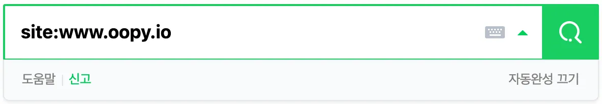 아래와 같이 site:{웹사이트 주소} 로 검색하면 네이버에서 내 웹사이트를 수집하고 있는지 확인할 수 있습니다.
