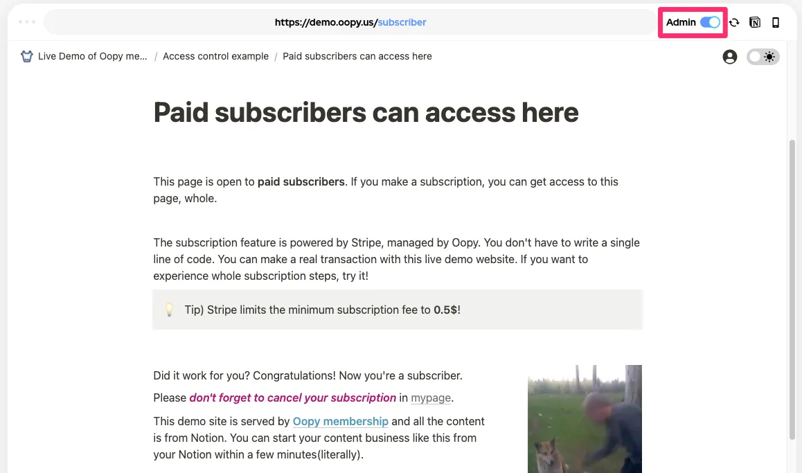 While in Oopy console, you can switch to admin by clicking admin button at the top of the preview browser. Using this feature, you can test both authorized and unauthorized cases without signing in and out.