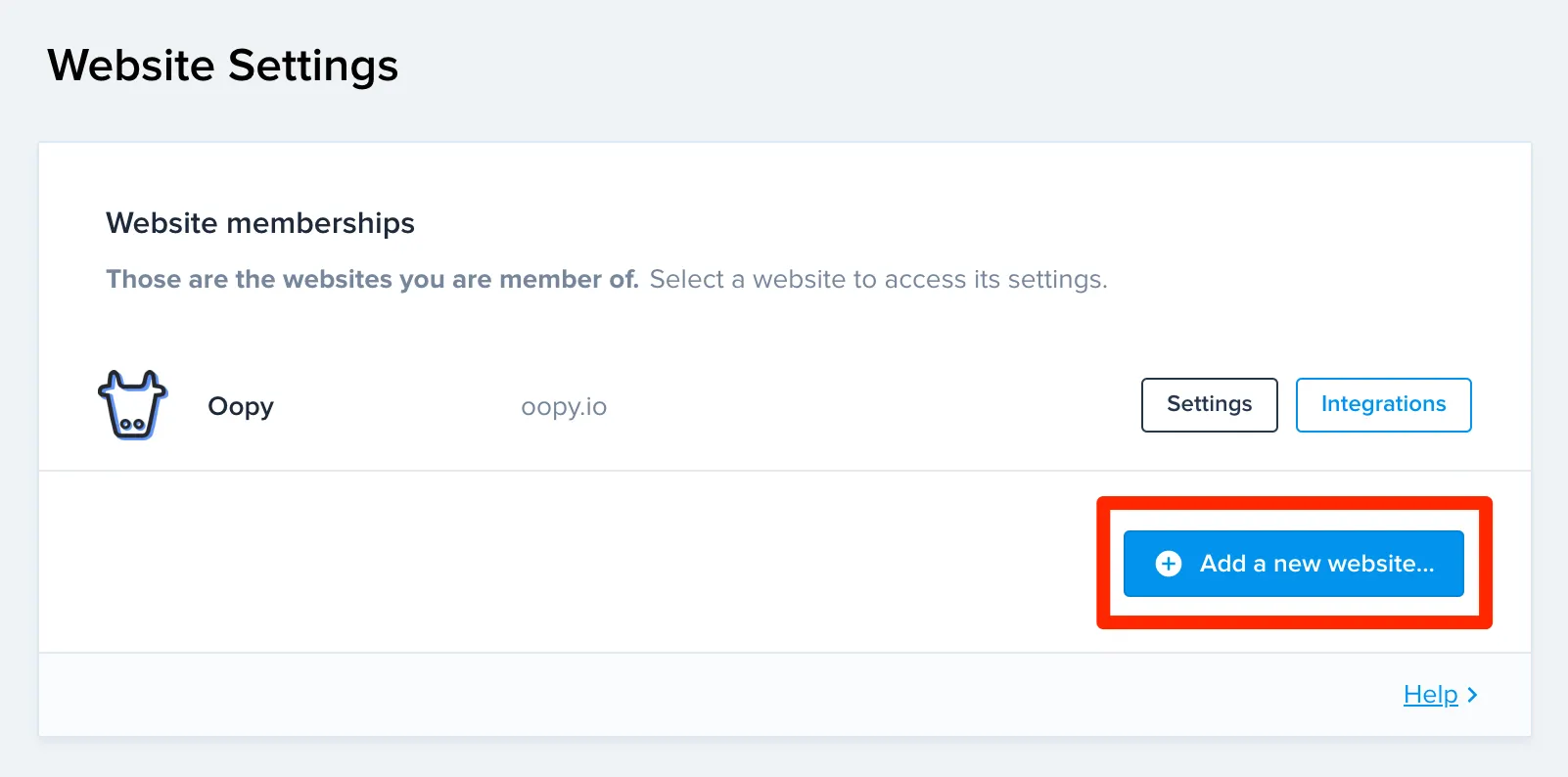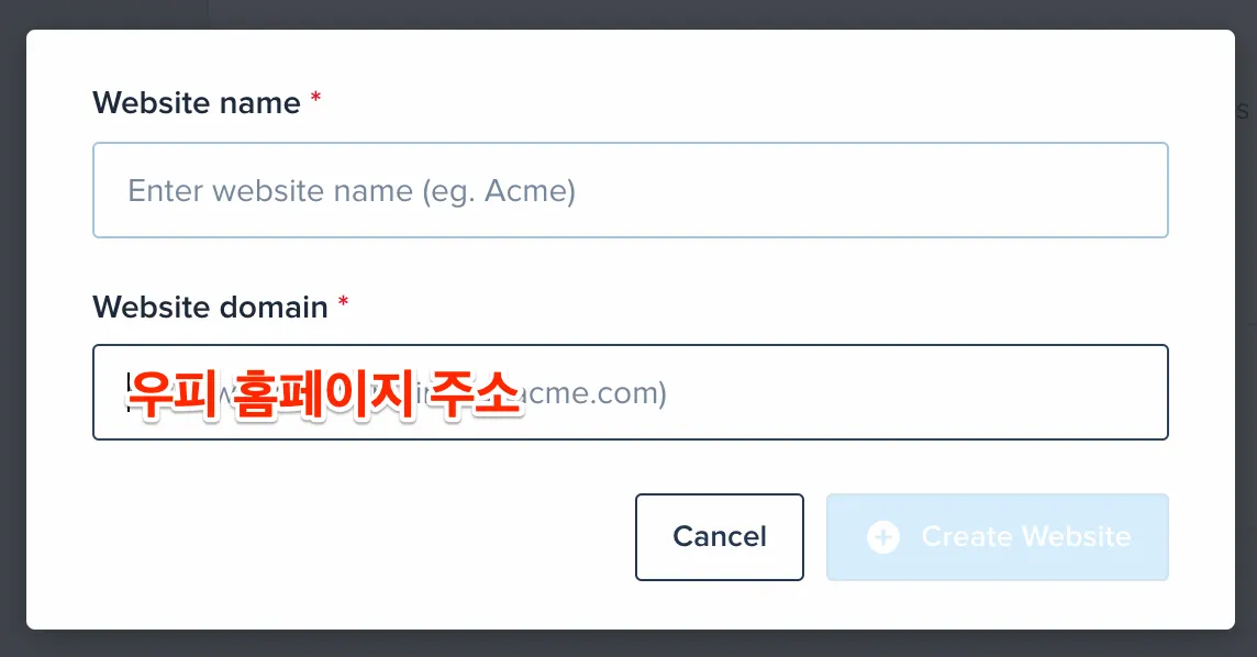 아직 Crisp 웹사이트를 만들지 않았다면 웹사이트를 생성해 주세요.