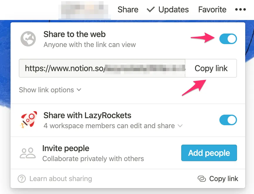Please share your Notion page as public. In your Notion page, click Share at the right-upper side, and turn on Share to the web option. Then you can copy your Notion page link. Use the link in registration.