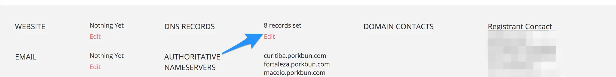 포크번에서 도메인을 구입한 경우, 여러가지 기본 설정들이 있는데요. 이를 삭제 해주셔야 정상 동작합니다. Current Records 항목에서 ANSWER가 pixie.porkbun.com 인 모든 레코드를 삭제해주세요.