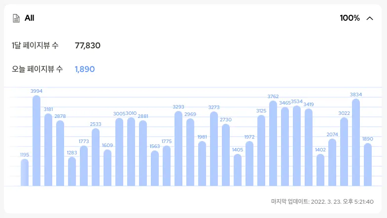 최근 한달 동안의 페이지뷰 통계