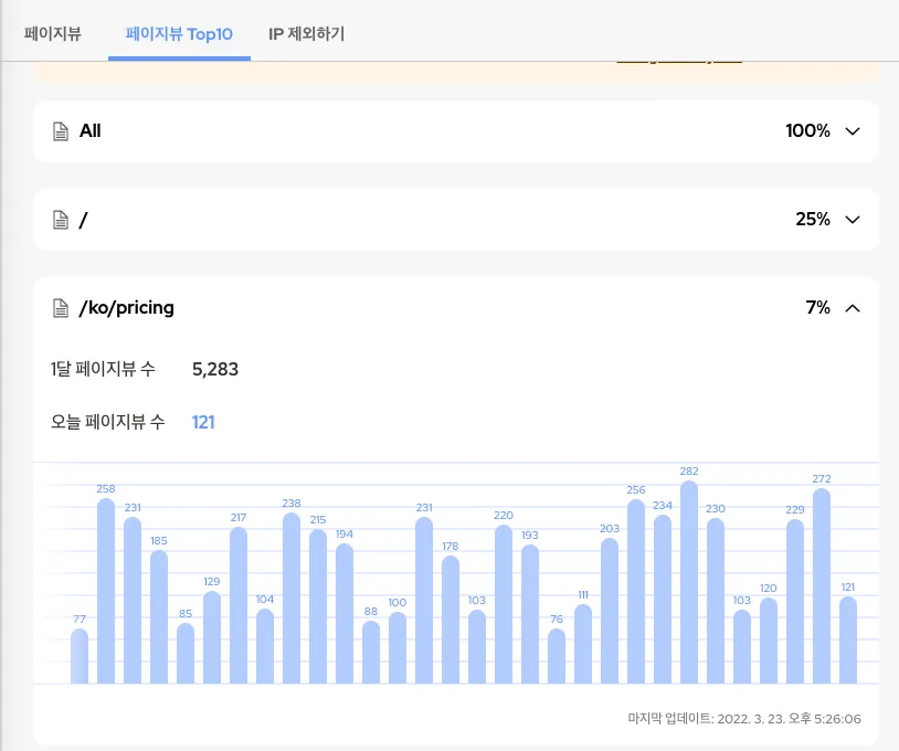 특정 페이지의 페이지뷰 통계
