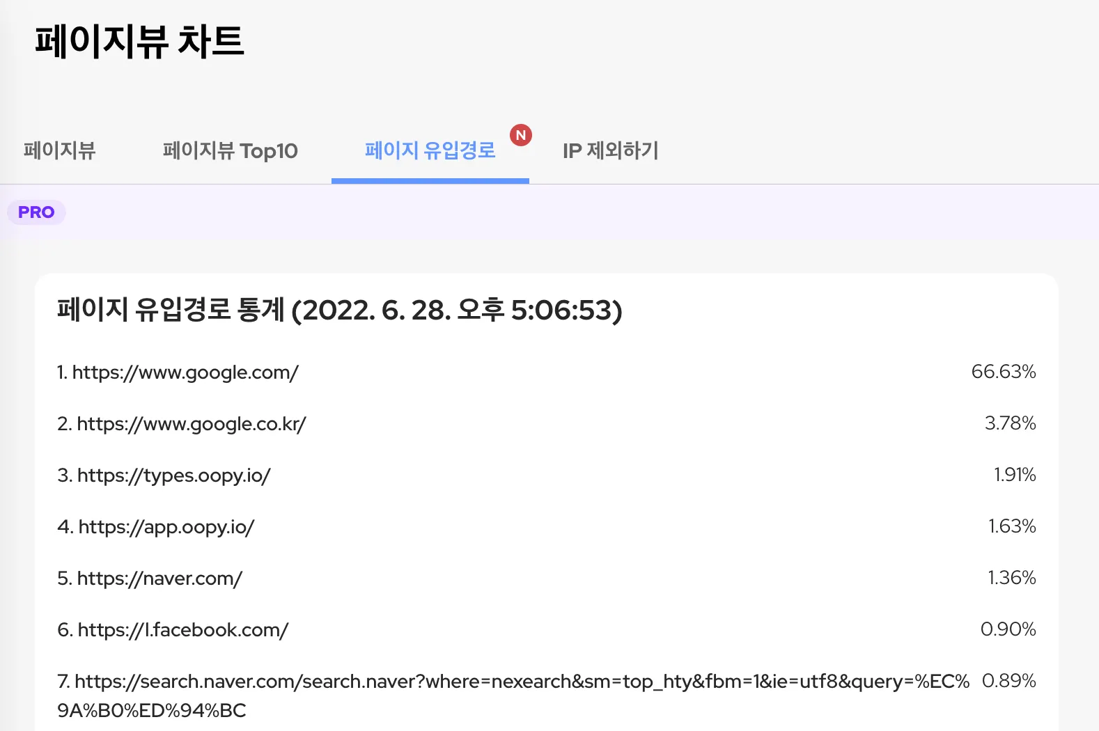 페이지뷰 유입경로 (Pro only)