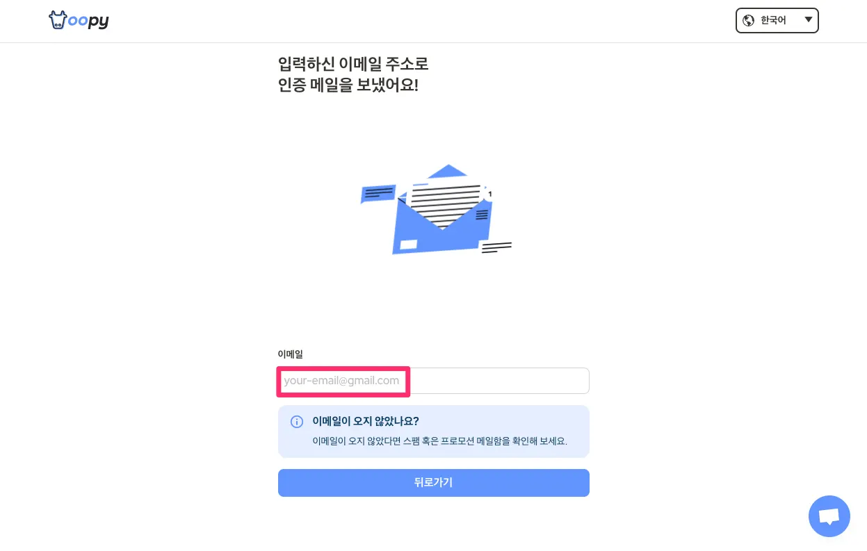 이메일이 오지 않는다면, 스팸함이나 프로모션 탭을 확인해보세요!