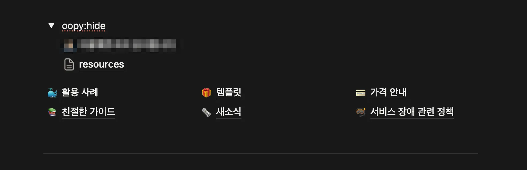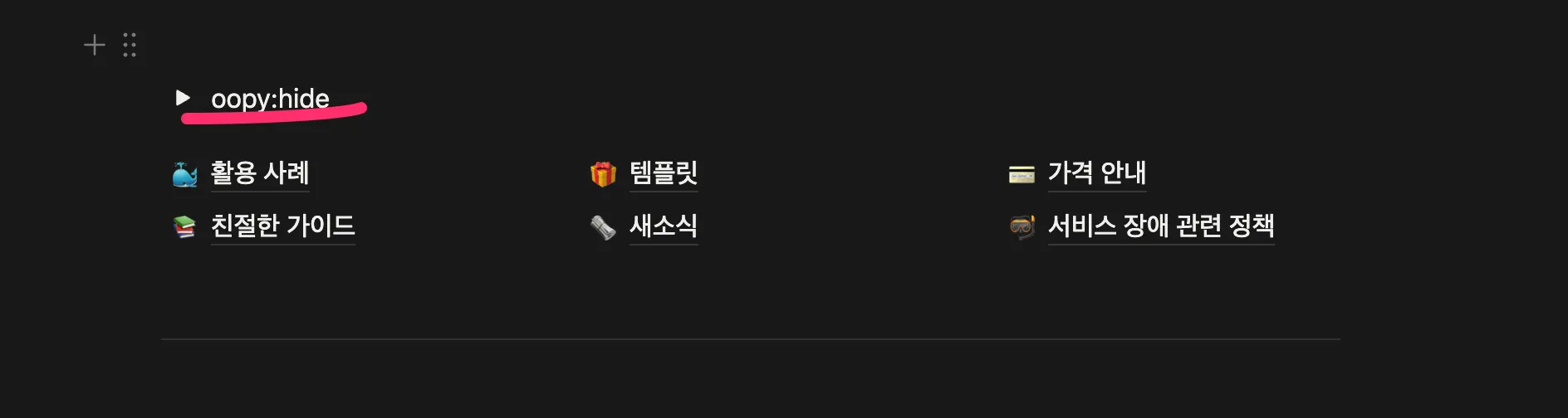oopy:hide 를 이용한 페이지 숨기기 기능